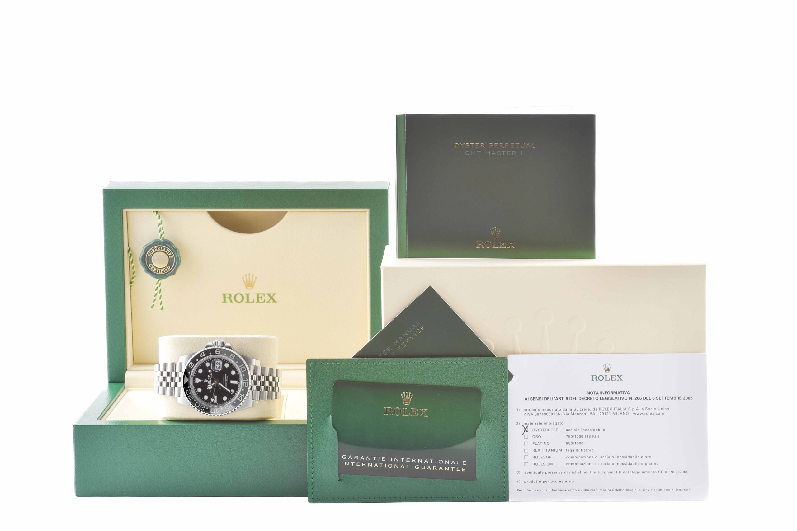 Orologio da polso in acciaio marca Rolex modello GMT-Master II referenza 126710GRNR